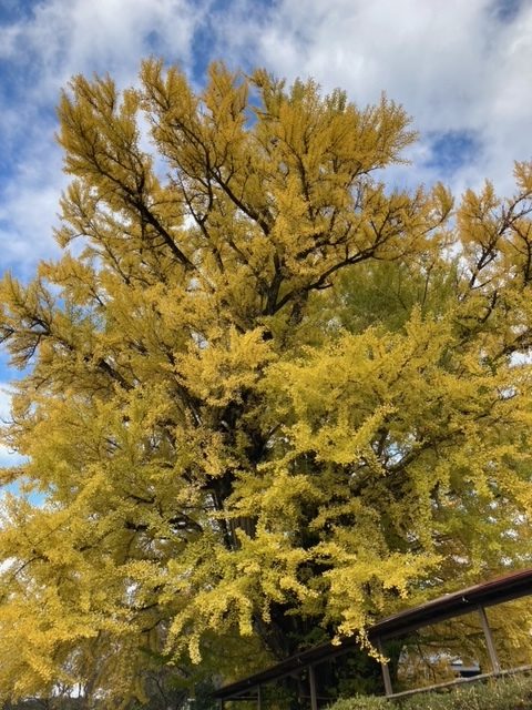 本堂の前にある大きなイチョウの木が黄色く色づいていました。