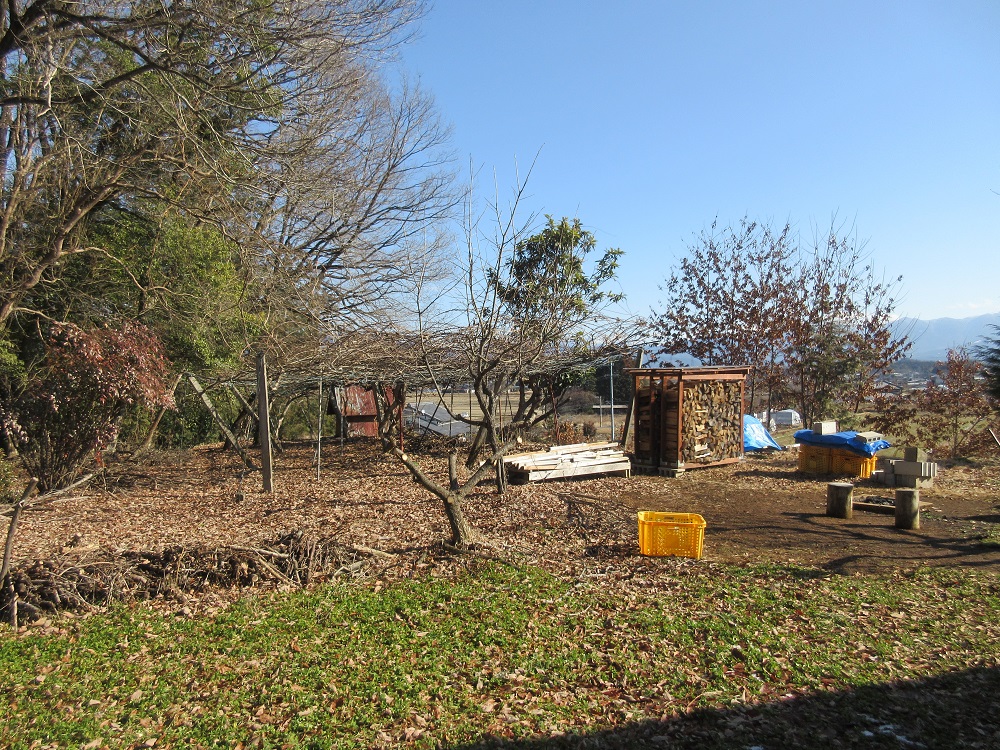 薪を貯蔵する棚や焚き火をするペースもあります。