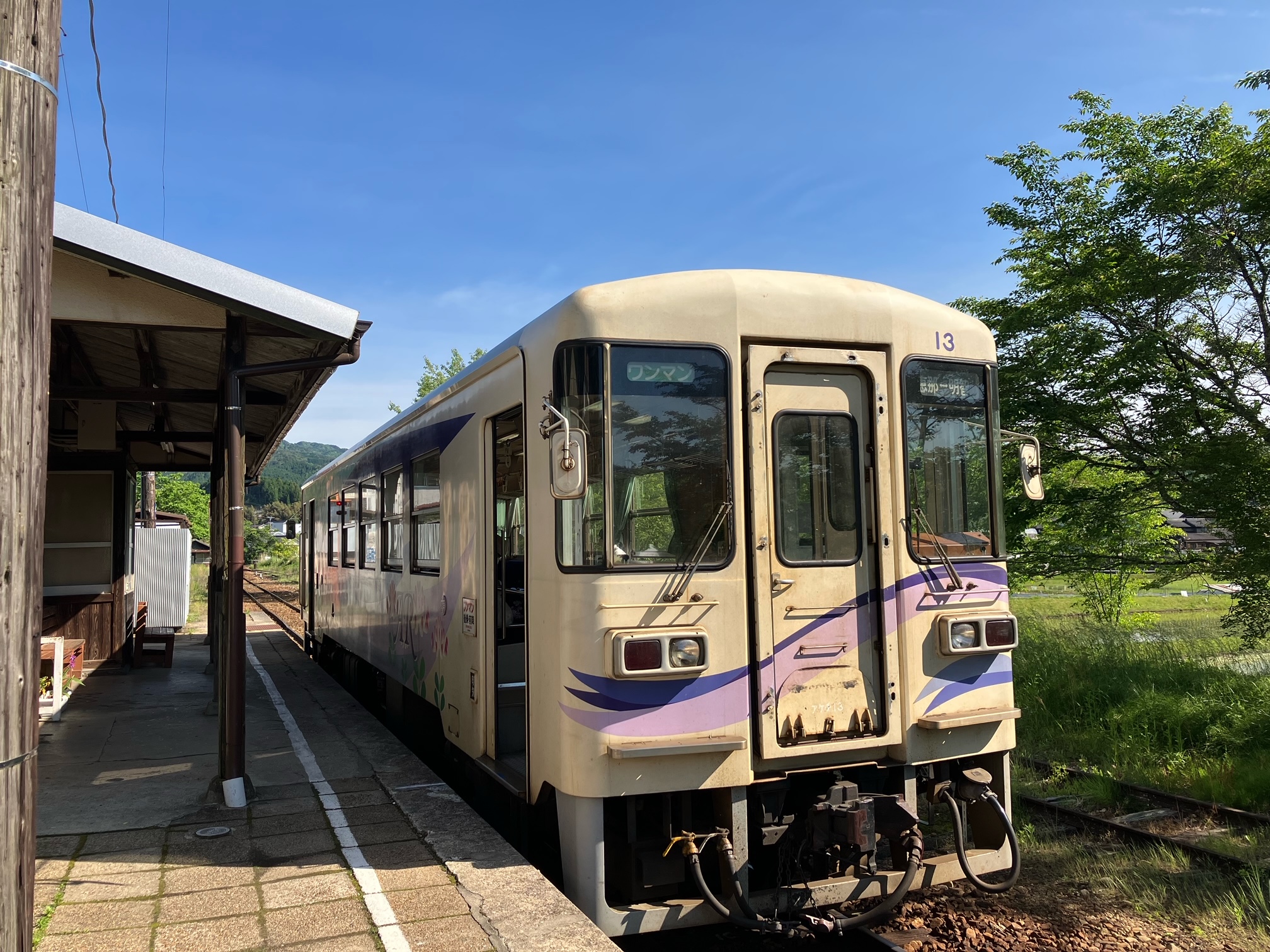 阿木駅ではちょうど電車が来ていました。