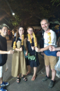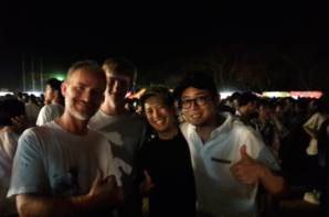 前日の8/12(土)の花火大会の日には、リハーサルも兼ねて、ゲストハウスの宿泊者と国際交流を楽しみました。