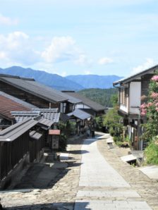 馬籠峠からの傾斜地に設けられ、民家は石垣を築きその上に屋敷を造る「坂のある宿場」が特徴です。
