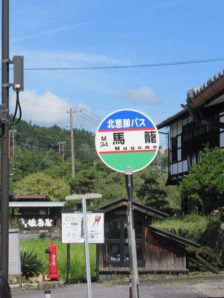 まず、JR中津川駅のバス乗り場で、馬籠行きのバスに乗ります。