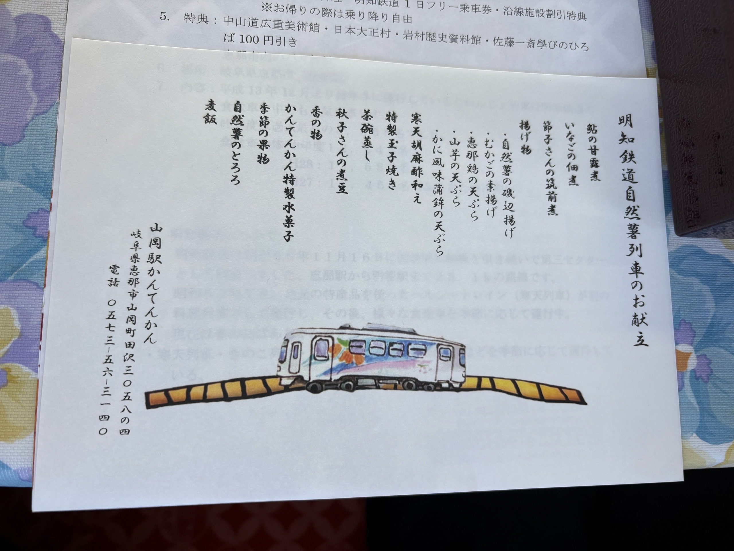 列車の中にはガイドさんがおり、お弁当のことや明知鉄道の駅について説明してくれます。