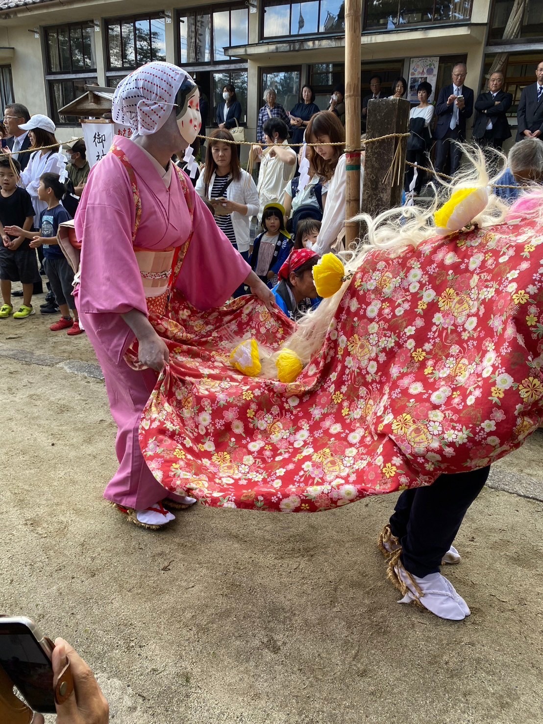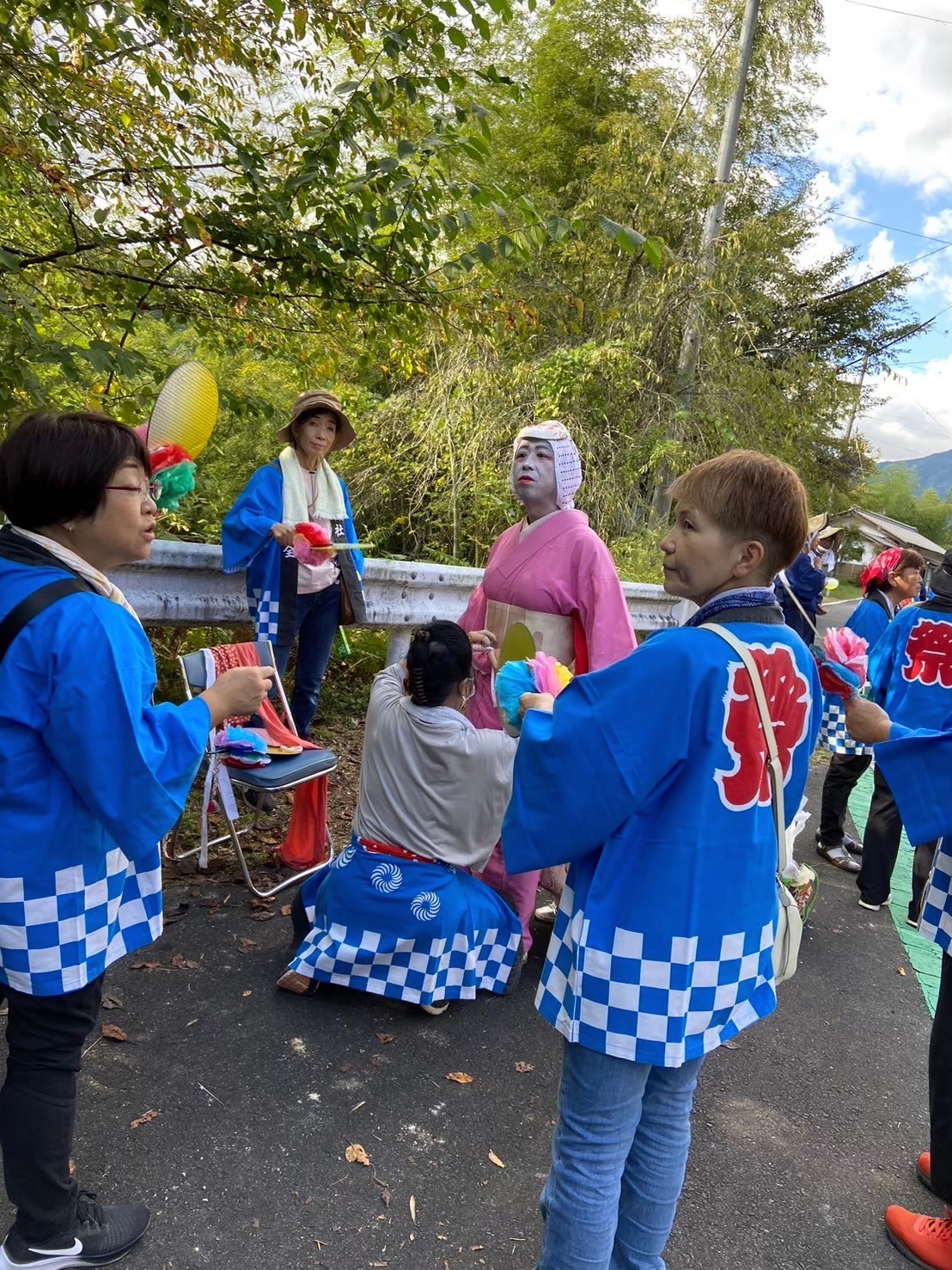 移住して間もない自分が、その例祭に関わることになりました。1年目はおかめ役を担当しました。本番に向けて約1か月間、地域の皆さんと練習を重ねました。大役でもあり、正直なところ不安もありましたが、その時間を通して同年代の仲間ができました。今でもつながりは続いています。
