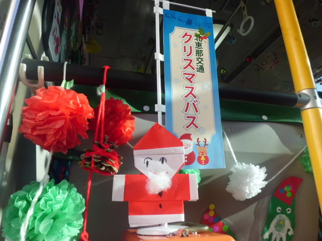 いつも何気なく乗っているバスでも、クリスマス気分が味わえますね 😛