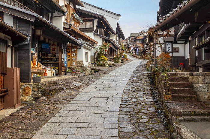 平日の馬籠宿は人通りが少なめなので