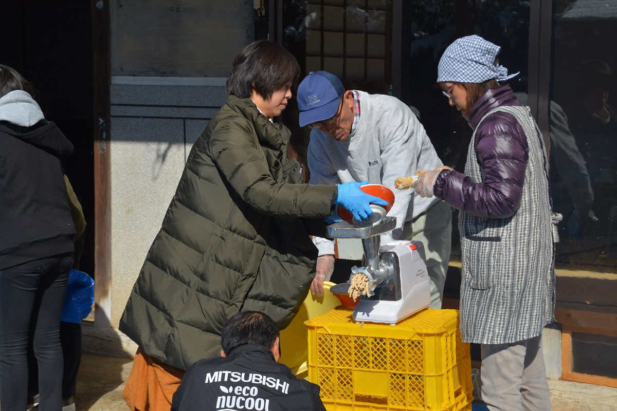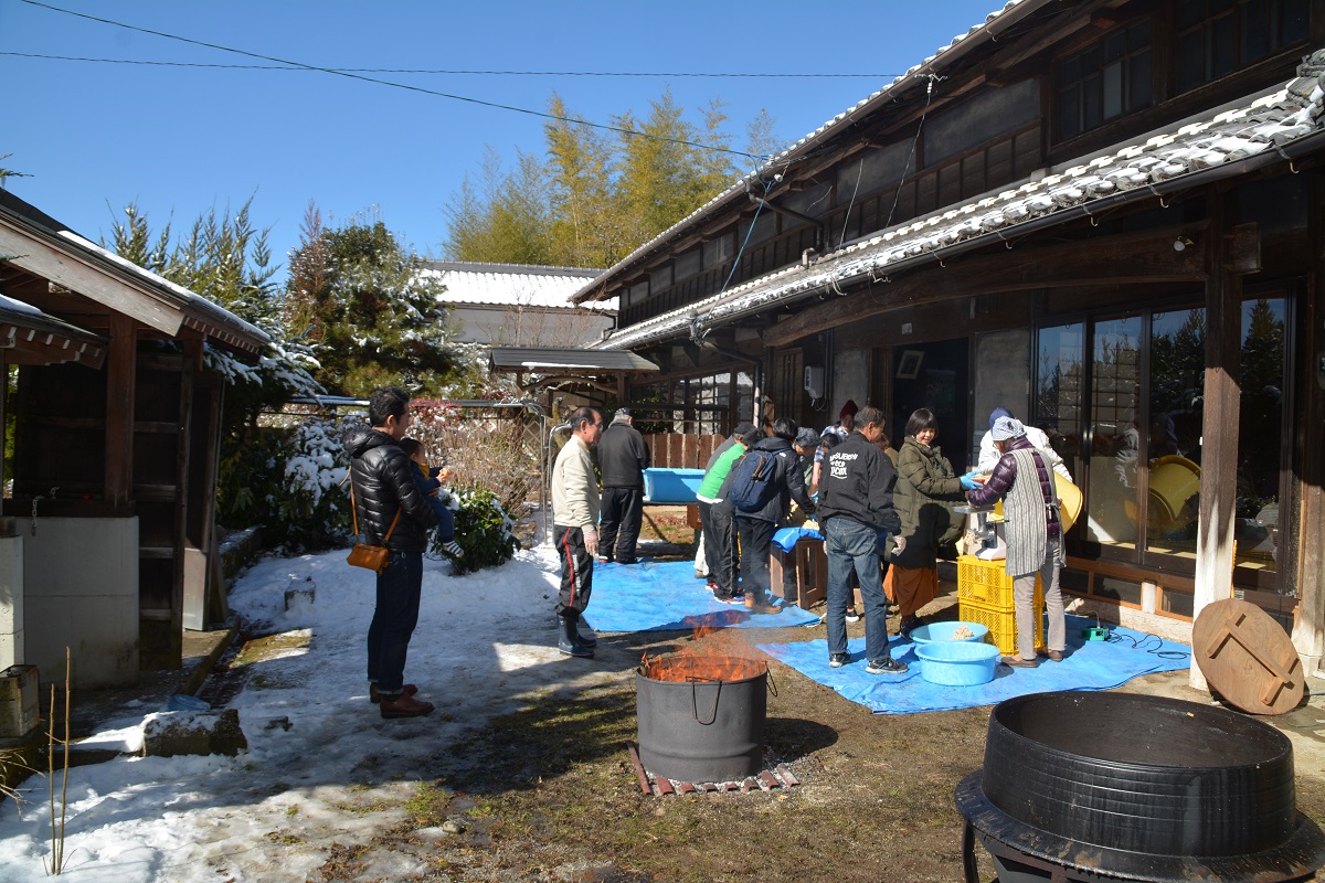 2月12日日曜日にNPO法人田舎暮らし応援ネットが昨年7月に阿木地区にオープンした”古民家体験宿 阿ん木のうち”で、同法人が毎年の恒例行事としている”味噌作り大祭” を行いました。