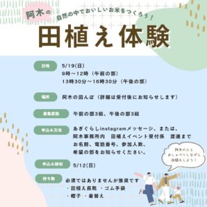 agigurasi instagramまたは 阿木事務所内 田植えイベント係 渡邉 0573-63-2001まで
